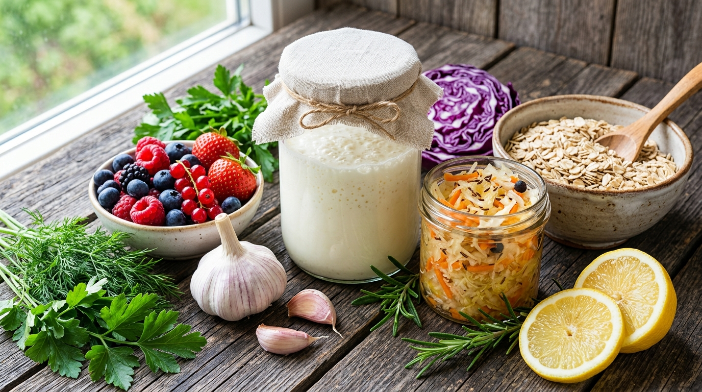 Kefir, sauerkraut, kimchi, miso, and kombucha deliver billions of live probiotic strains. One tablespoon daily introduces beneficial bacteria that crowd out harmful pathogens and improve digestion.